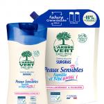 La crème douche peaux sensibles L’Arbre Vert bien-être s’adapte aux peaux de toute la famille, bébé compris.