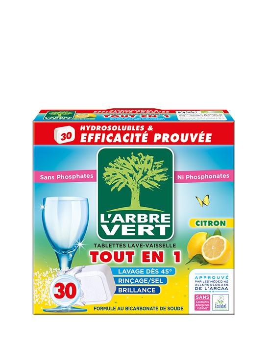 Les tablettes lave-vaisselle L’Arbre Vert sont hydrosolubles et tout en 1. Certifiées par le label écologique Ecolabel Européen, elles nettoient, dégraissent efficacement et préservent la brillance naturelle de votre vaisselle.