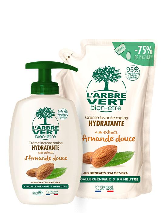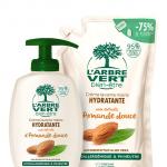 De hydraterende handzeep van L’Arbre Vert bevat zoet amandelextract.